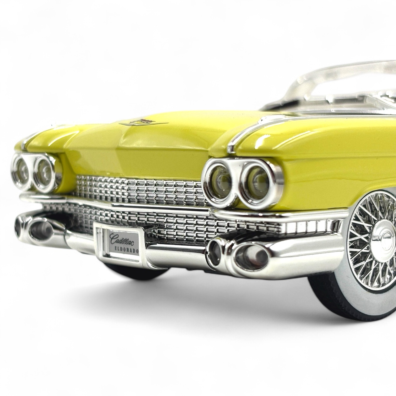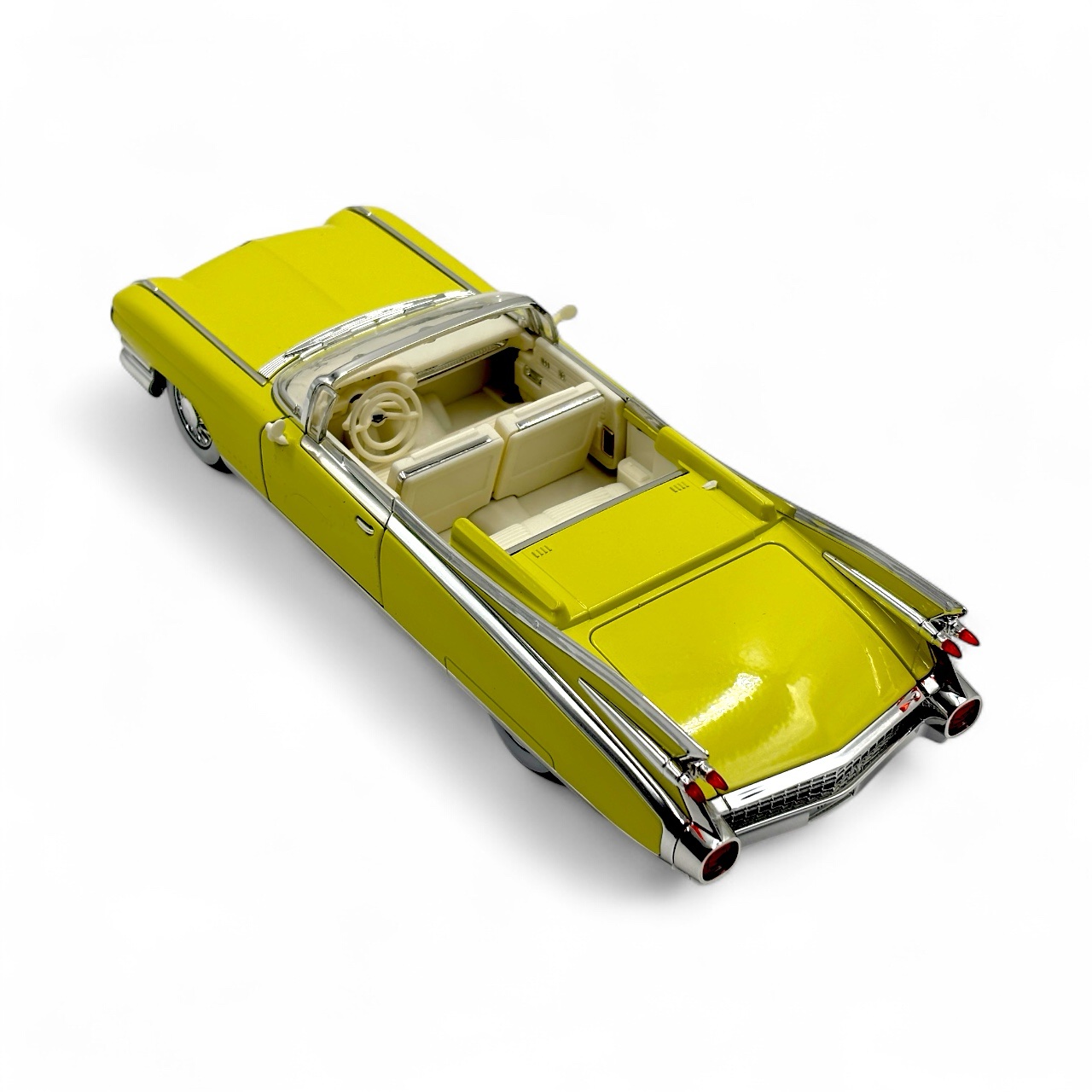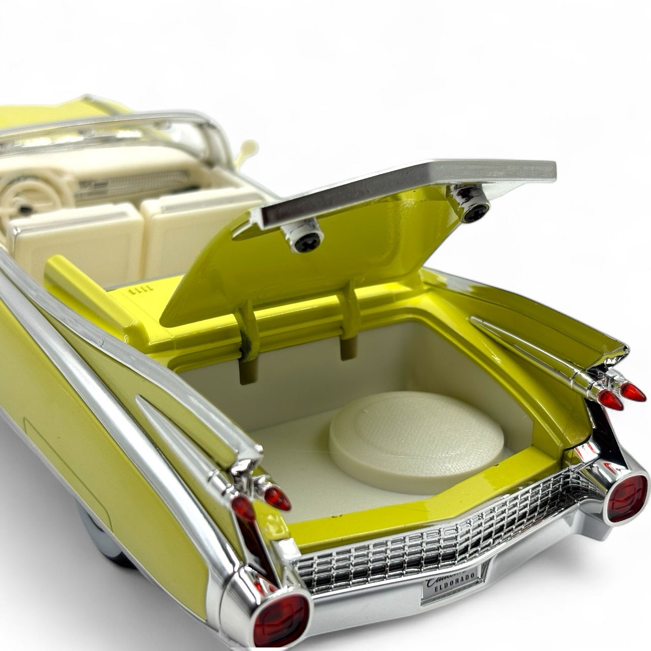 1:24 scale die-cast model of a 1959 Cadillac Eldorado Biarritz. This collectible model car features a detailed interior, a metal body, and plastic parts.